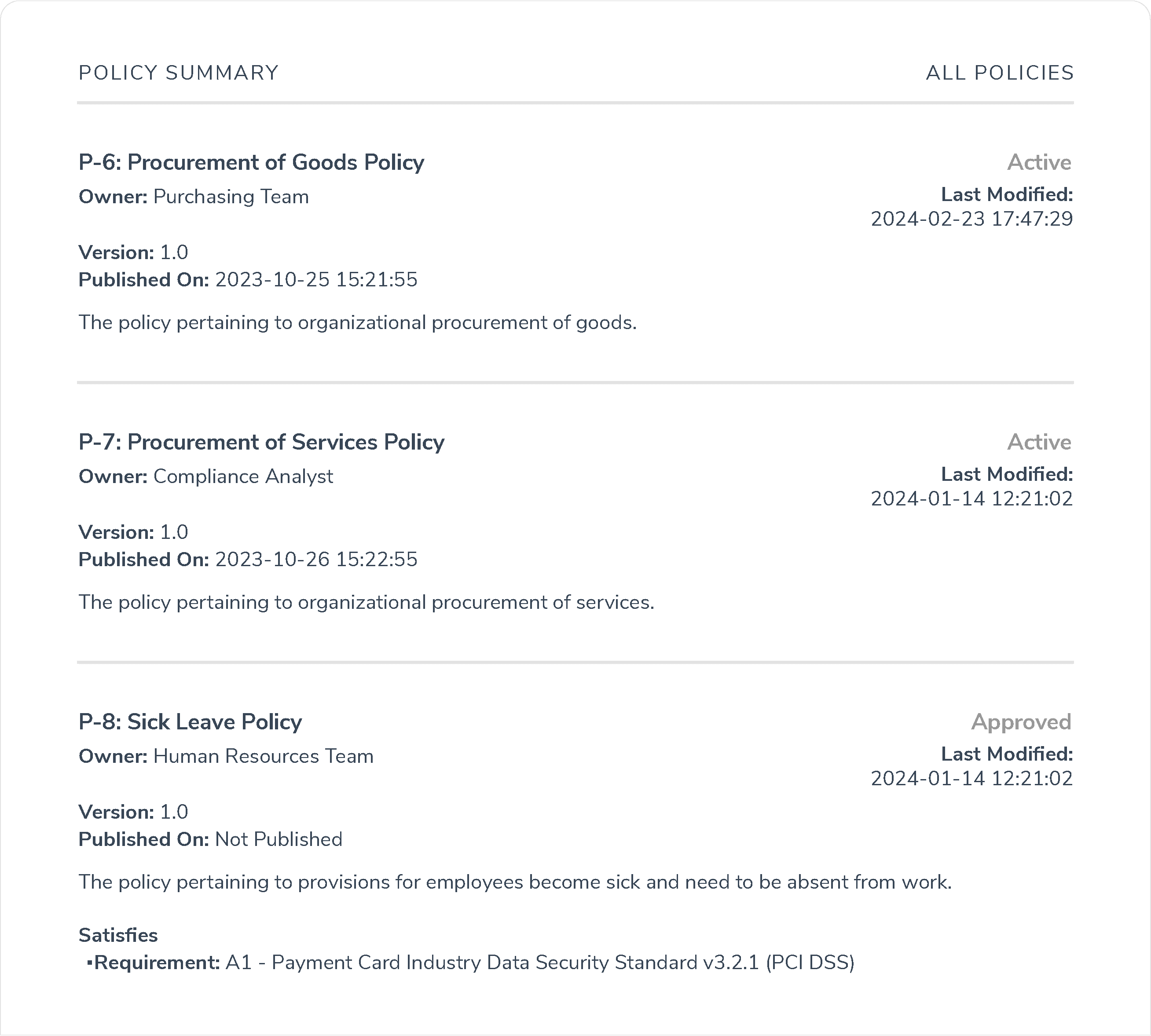 Reduced time waste and manual tasks by automating policy workflows including distribution, task assignments, and control updates.